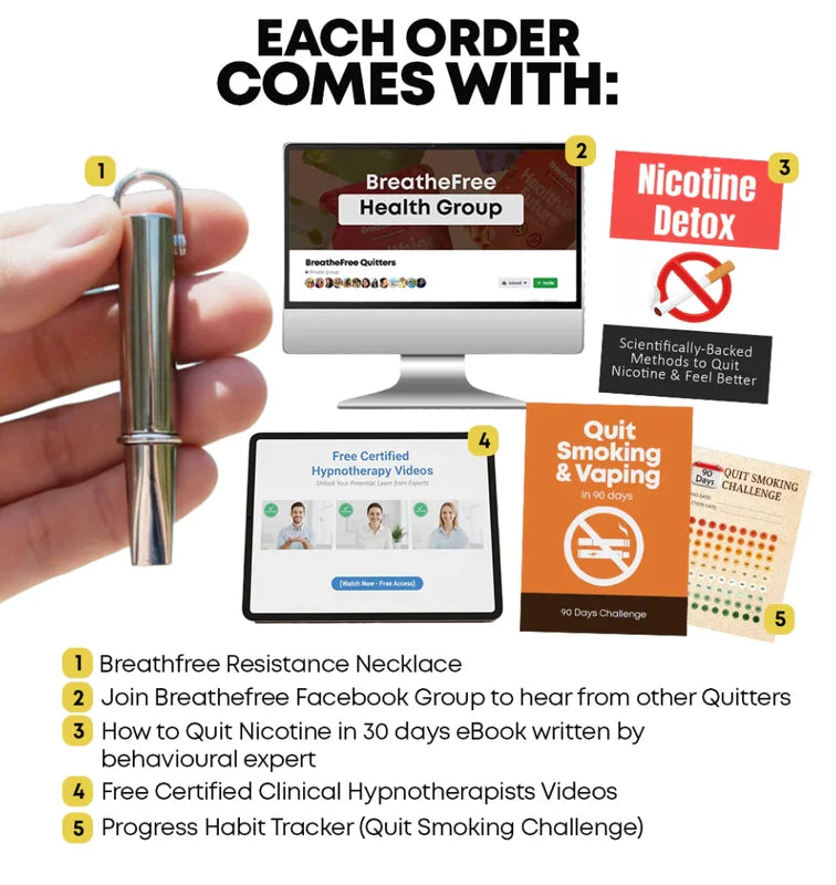 Quitting isn’t just chemical - it’s the habit and hand to mouth ritual your brain has repeated thousands of times. When that ritual is suddenly removed, cravings and withdrawals hit harder. Most quit aids focus on the substance, but ignore the behaviour your brain is wired to expect. The BreathFree resistance necklace is designed to replace the ritual, not the addiction. By recreating the familiar hand to mouth motion and adding gentle breathing resistance, it gives your brain a sense of familiarity - without nicotine, chemicals, or vapor. This helps your brain feel like nothing has suddenly changed, making it easier to step away from nicotine while keeping the feeling your brain is used to.